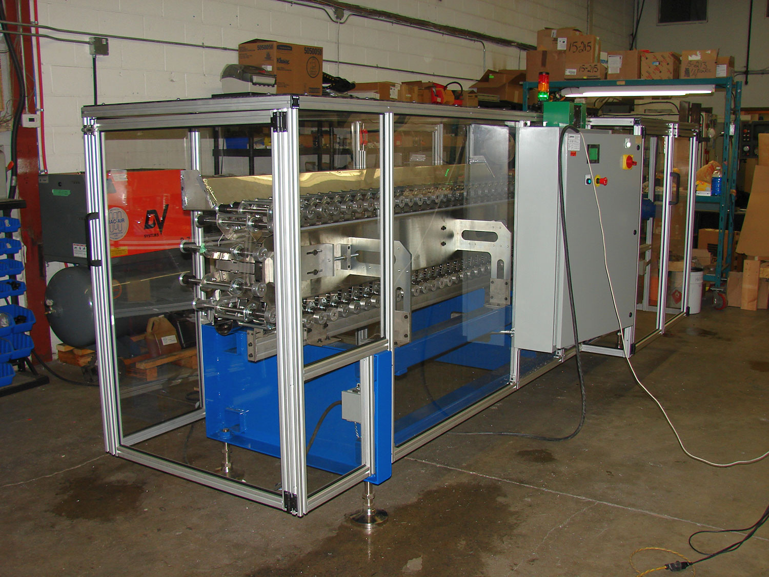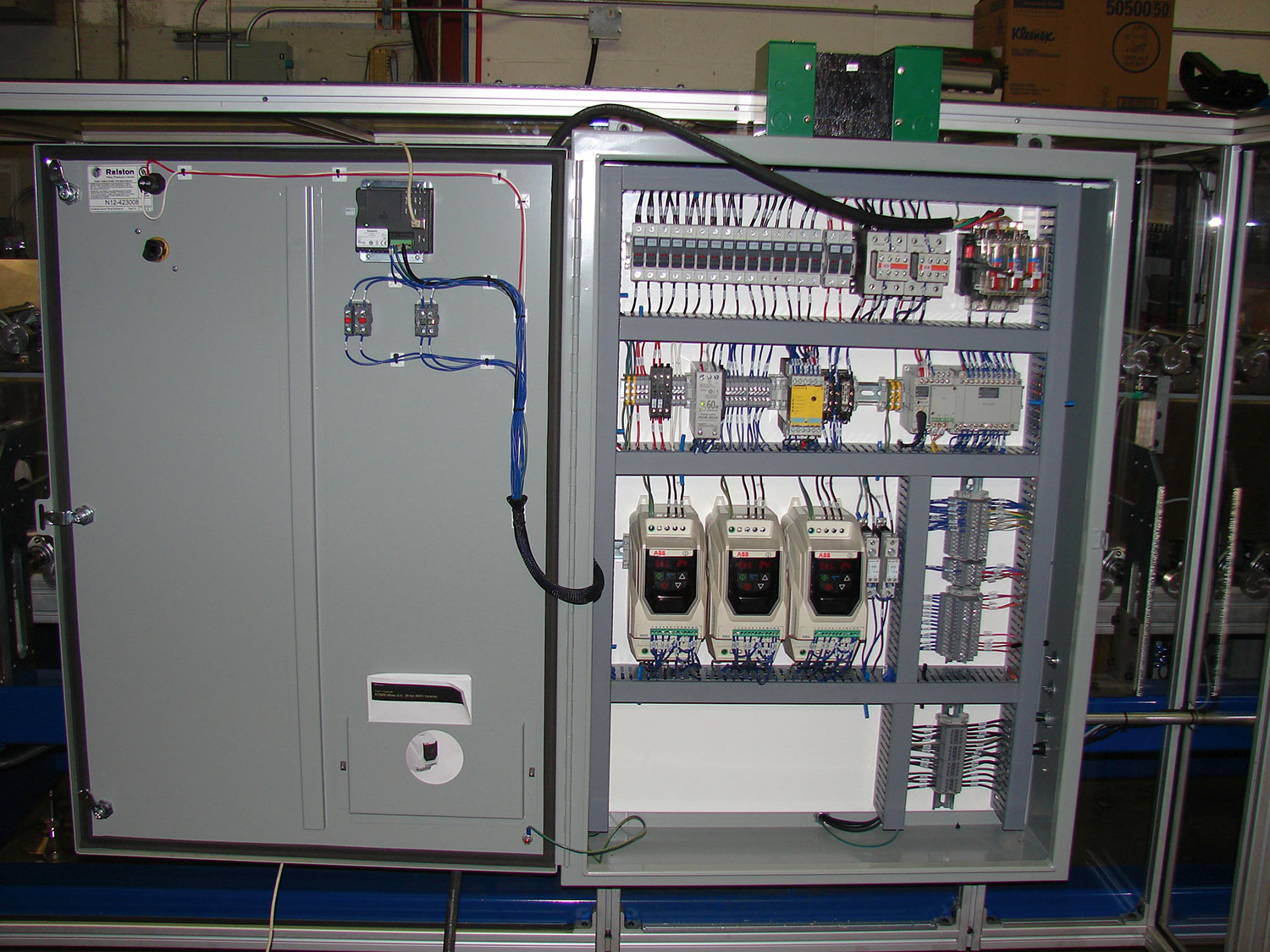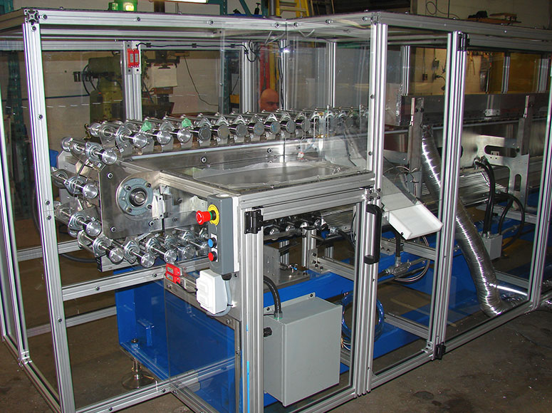 SPOKO Integrators Ltd. designed, built and provided fine tuned process for a custom machine applying Loctite Threadlocker on three types of automobile steering column lock nuts. The system consisted of Panasonic PLC, HMI and three motors controlled by three VFD's. Main challenge in this project was to find the machine process settings that would yield in optimal application of the Loctite solution to a specified number of nut threads while controlling viscosity, application, and drying. We performed thorough prototyping from our proof of conceptual design and built the assembly followed by fine statistical tuning of the process resulted in 1200 lock nuts per hour - coated dried and ready for packing.