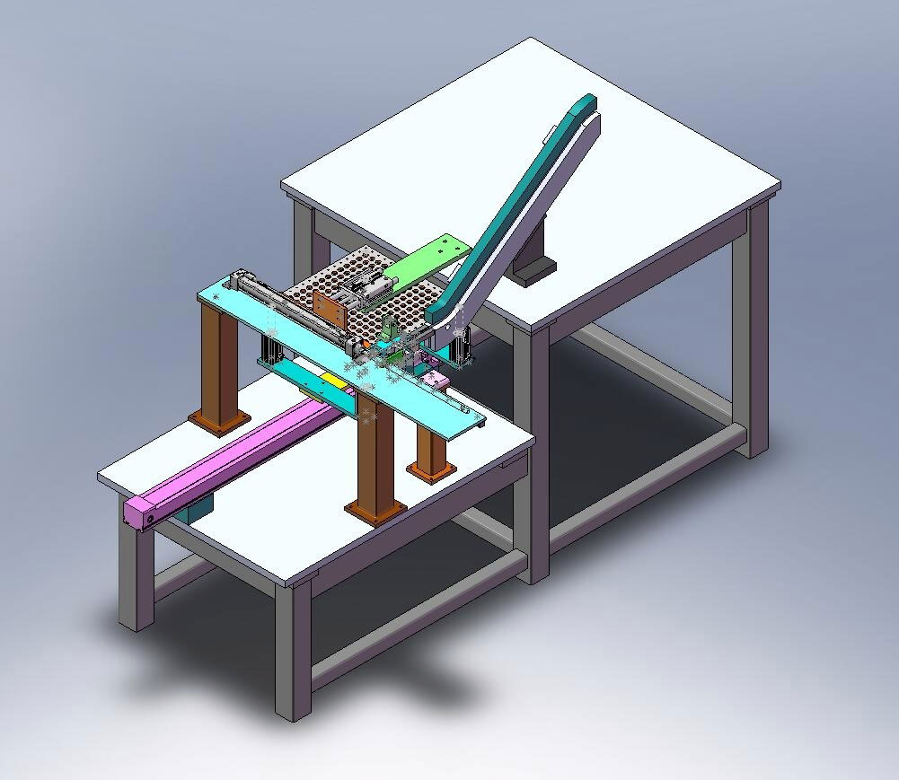 SPOKO Integrators Ltd. provided an Automated Screw Loading Machine based on an operator placing a tray onto the machine and initiating a cycle to begin loading screws. Once the cycle was completed the operator removes the tray loaded with screws for further processing. The screw dispenser included a custom bowl feeder, vibrating beam, loading mechanism and tooling for locating 400 screws into the tray at approx. 2 minute cycle time. Screws that did not load into the tray (overflow) have been recycled back to the bowl feeder for the next dispensing cycle.