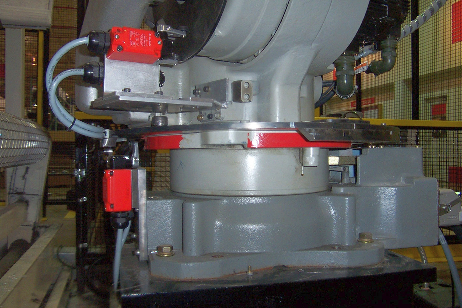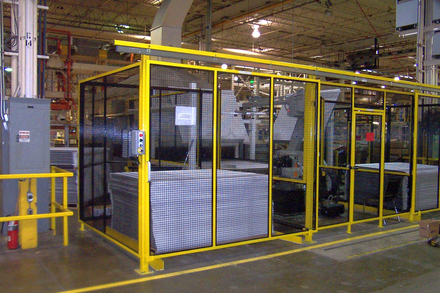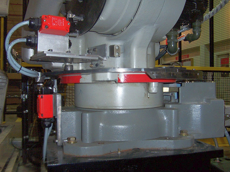 SPOKO Integrators Ltd. provided an entire Safety Systems for an industrial robot. One of the challenges this system presented was ensuring no cycle time interruption while maintaining a high level of safety for workers replenishing material. To achieve this condition Spoko created three safety zones. To load one of the two stacks the operator had to request permission within the system, enabling one of the zones and blocking the robot from operating in the zone where product was going to be replenished. The robot was also outfitted with additional safety switches to monitor the position of the arm thus confirming safety of the operators.