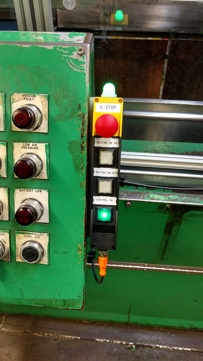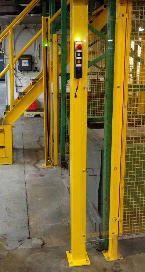 SPOKO Integrators Ltd. provided a complete Safety Systems for the industrial Depalletizer Machine that was over 40 years old, 50' long, and two levels high. One of the challenges the integration of a safety system presented on this equipment was to perform the scope of work within 3 working days. In order to achieve this requirement Spoko has decided to use a Monitoring Safety System with AS-i Communication. This solution allowed us to connect 6 Safety Door Switches, 3 operator stations with E-Stops and additional Push Buttons, 2 Safety Light Curtains, all using only one safety network and controller. This technology prompted less time for installation, and allowed us to complete the work successfully prior to set deadline.